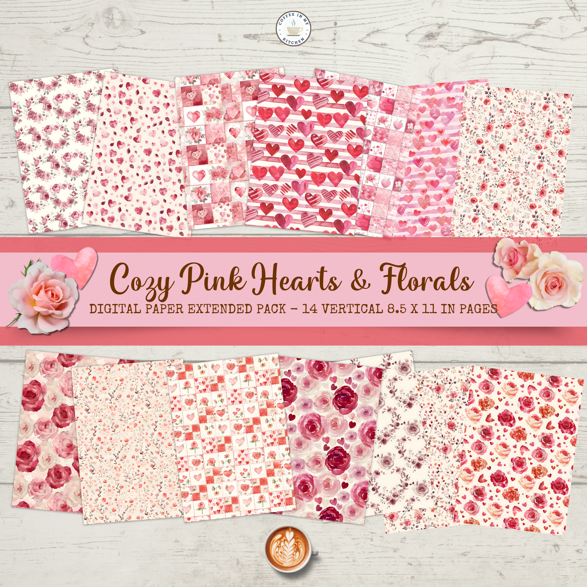 💗🌸💕 Soft, romantic, and irresistibly cozy, the Cozy Pink Hearts & Florals Digital Paper Extended Pack is a warm Valentine-inspired collection filled with watercolor hearts, vintage roses, patchwork quilt patterns, and delicate floral blooms. Designed in a dreamy palette of pinks, reds, burgundy, coral, cream, and ivory, these papers bring timeless charm and gentle romance to every project!